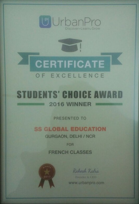 Received the award for getting maximum number of reviews and testimonials from the Students from all walks and professions for having done a value-add to their knowledge and understanding of French Language.